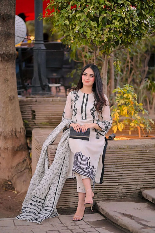 Maria.B- 3 Piece Embroidered Dobby Lawn Suit